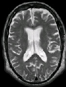 IMAGING FINDINGS: The CT was performed on AIC’s new 16-slice helical multi-slice CT (MSCT). Both routine single-slice and thin-section helical scans were obtained and 3D/Multiplanar images were performed on the Advanced 3D workstation. Fig. 1 shows an image at the level of the lateral ventricles with possible high density within the sulci on the right (arrow). To confirm this finding, an MRI with contrast was then obtained on AIC’s 1.5-Tesla high-field, short-bore Siemens MRI. Fig. 2a-b are T2-weighted images at the same level showing NO definite abnormality. T1-weighted images (not shown) were also negative. The post-contrast images (not shown) showed NO abnormal enhancement in this region, either. Diffusion-weighted images were also negative. However, Fig. 3a-b, which are FLAIR images, demonstrate clear hyperintensity within multiple sulci involving the right temporo-parietal area (arrows).